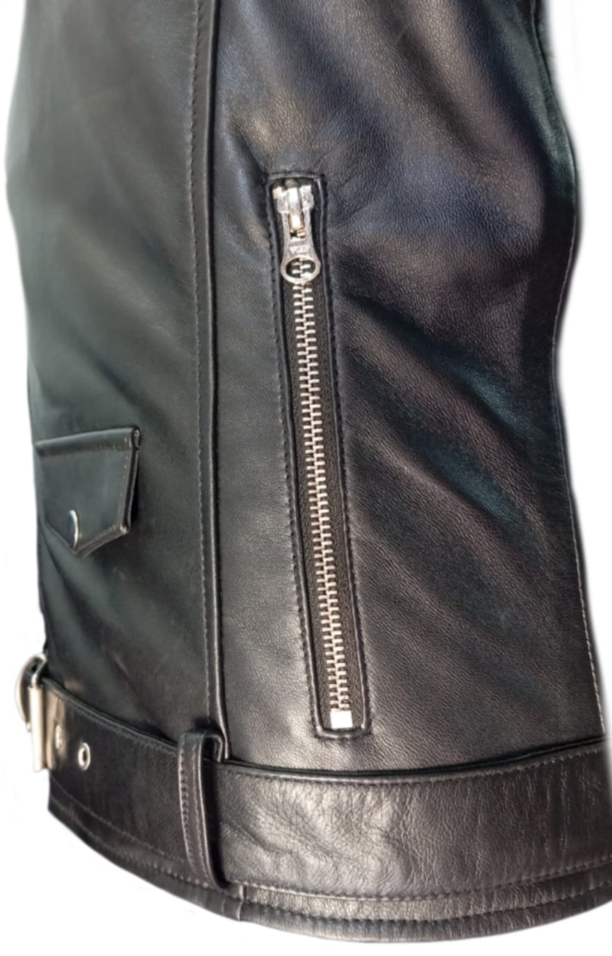 Durable Hardware: Heavy-duty metal zippers and snaps throughout, ensuring longevity and maintaining the rugged Biker Jacket style.