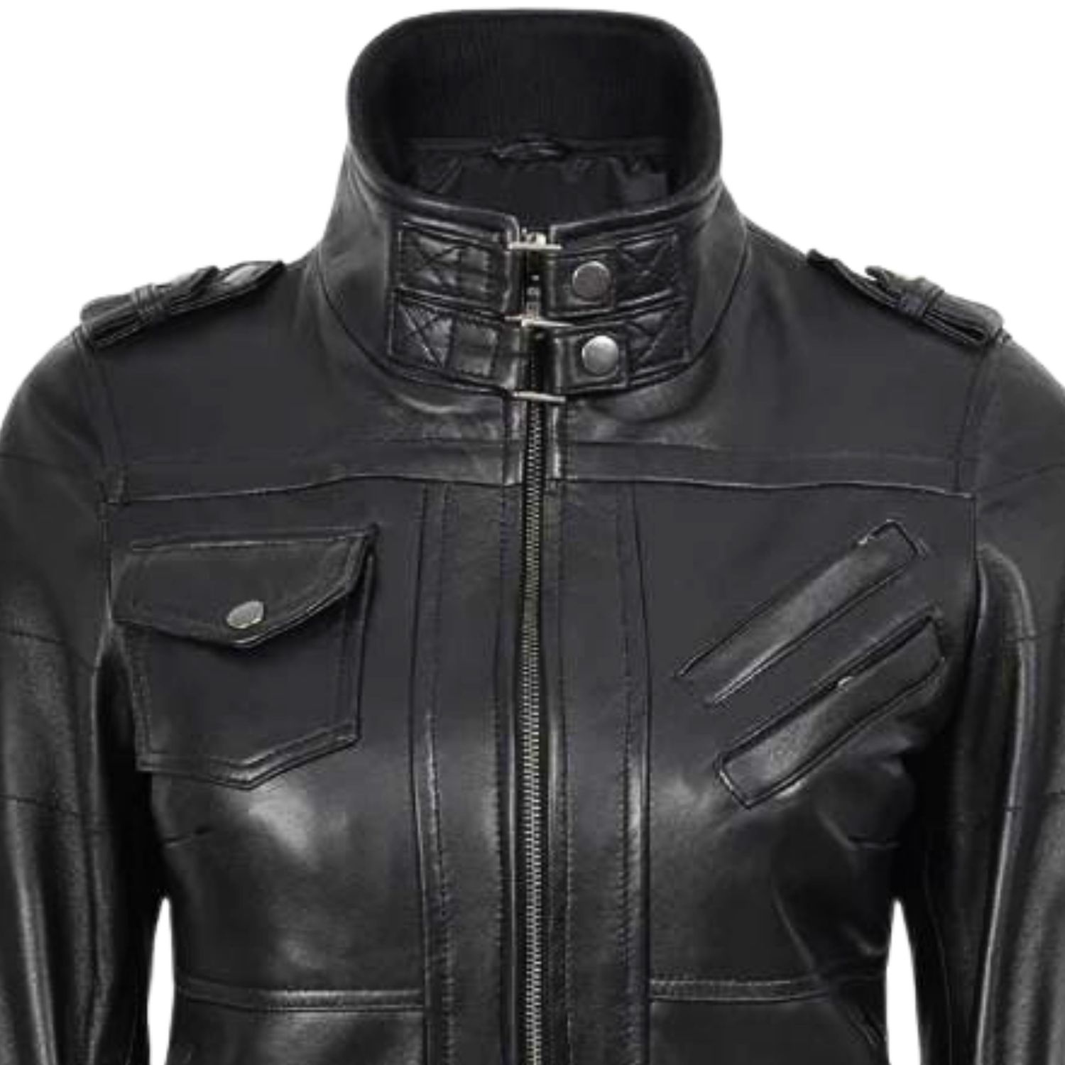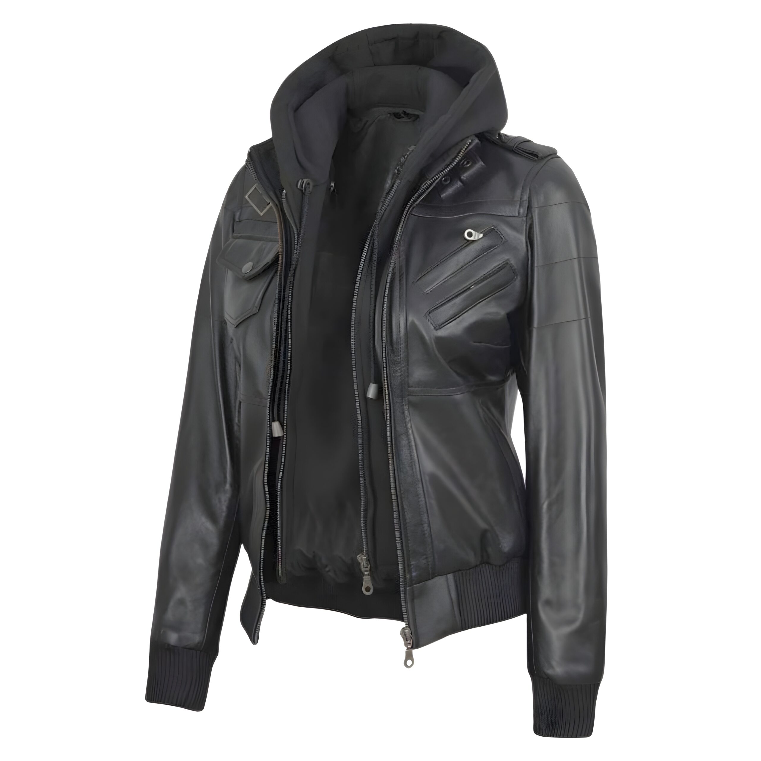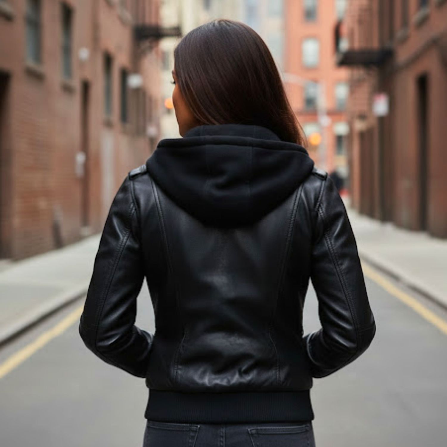 This premium women’s leather jacket from Pelnoir is engineered for customers who expect adaptability, performance, and a luxury finish. Designed as a modern hybrid between a biker coat and a bomber silhouette, this piece delivers elevated versatility with its fully detachable hood and removable scarf-style insert. Whether worn rugged, sleek, or street-ready, Pelnoir ensures a high-value outerwear solution that transitions seamlessly across all environments.