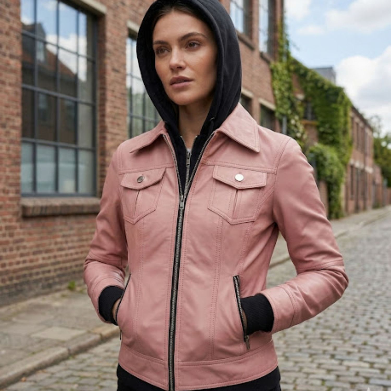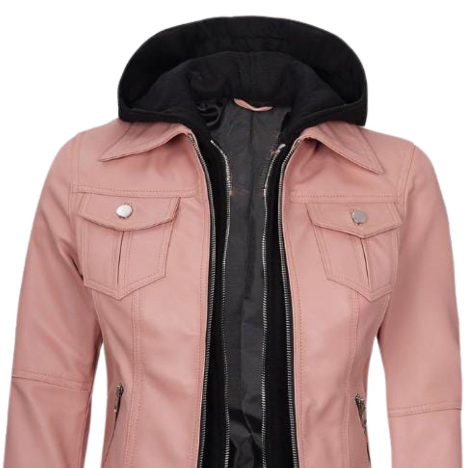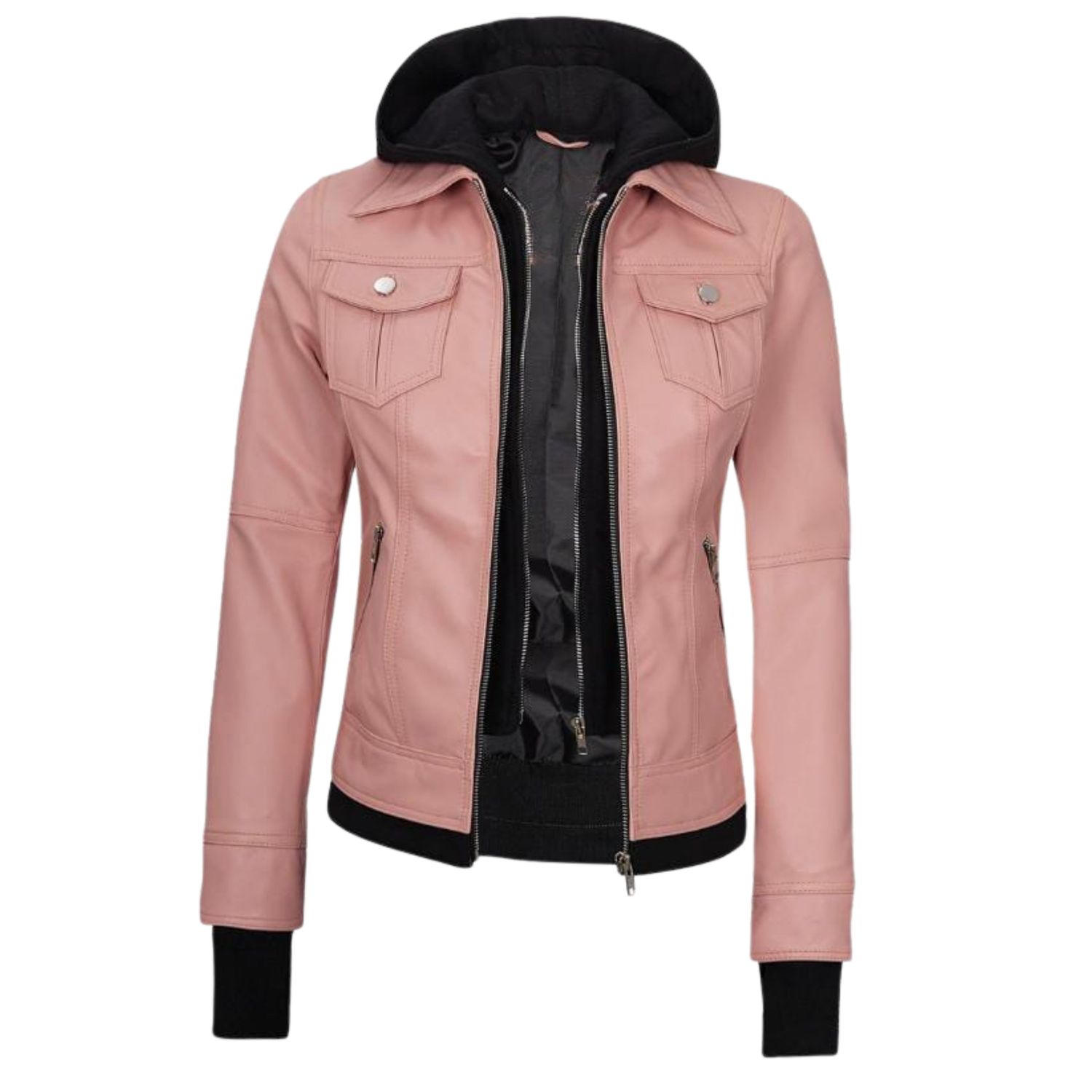 Elevate your streetwear game with this Women’s Pink Hooded Leather Jacket, engineered for comfort, versatility, and standout style. The dual-layer hoodie insert gives you the casual edge you want, while the premium leather exterior delivers the polished moto attitude you love. Whether you’re running errands or stepping out for the night, this jacket keeps your look sharp and confident.